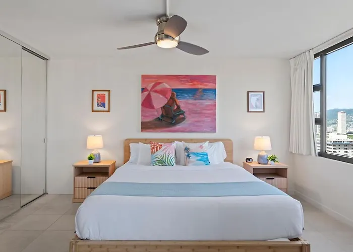 カラカウア通りから徒歩でわずか6分の場所に位置するNewly Renovated Waikiki Banyan 1 Bedroom W Parking ホノルルアパートからは、山の景色を眺めることができます。 ビジネスとレジャーの両方でWi-Fiを利用することができます。
